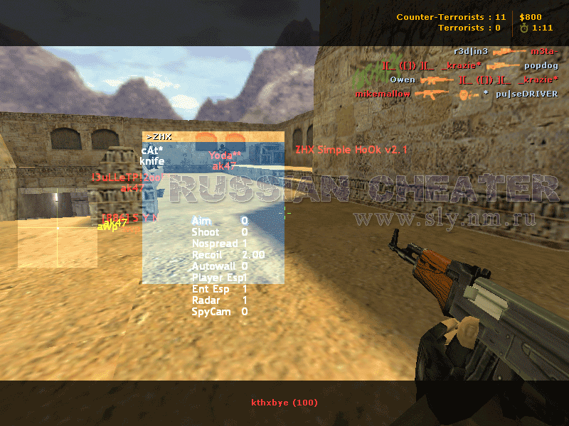 1. Silent aim - este momentan cel mai folosit cod pentru faptul ca este foarte greu de detectat. De multe ori este nevoie de un simplu cfg iar codul se poate activa sau dezactiva dintr-o anumita tasta.